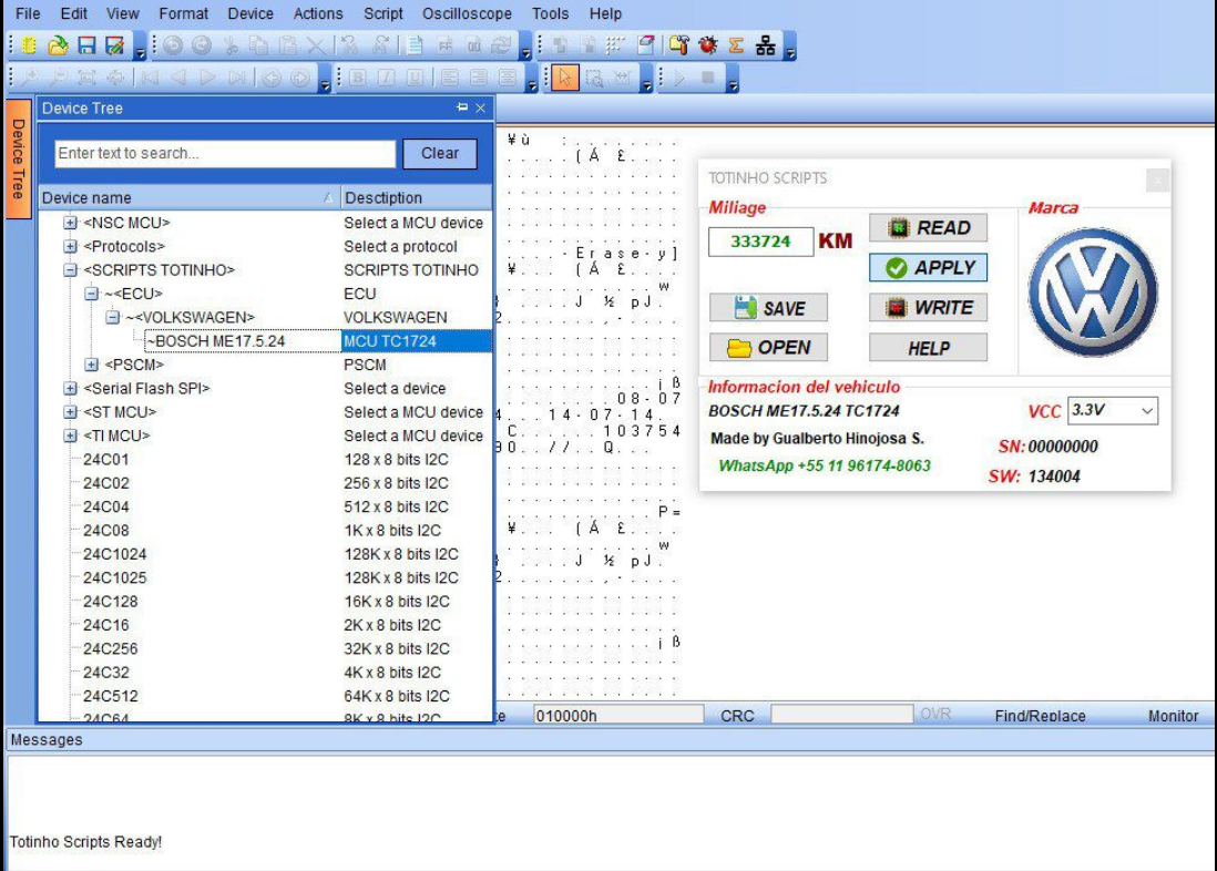Este script permite realizar lectura, edición y escritura de kilometraje de forma segura y precisa, utilizando procesador Tricore TC1724.